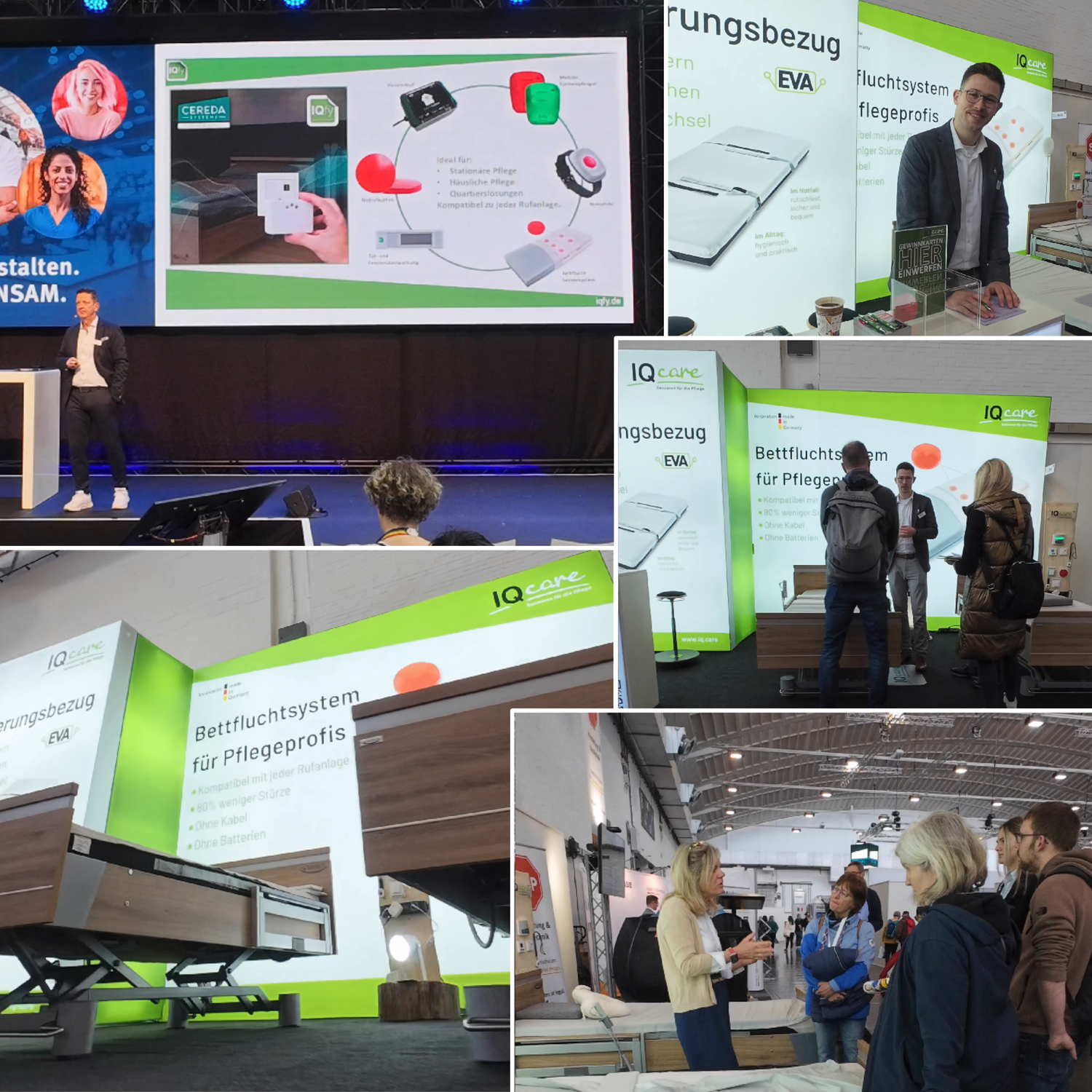 Unser erweiterter Messeauftritt auf der Pflegeleitmesse in Essen im April 2024 zur Präsentation unserer Bettflucht- und Assistenzsysteme.
