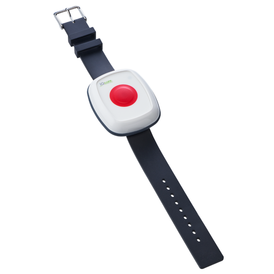 Die Notrufuhr NOBU GO ist wasserdicht und durch das hygienische Kunststoffarmband der perfekte Alltagsbegleiter für Pflegebedürftige.