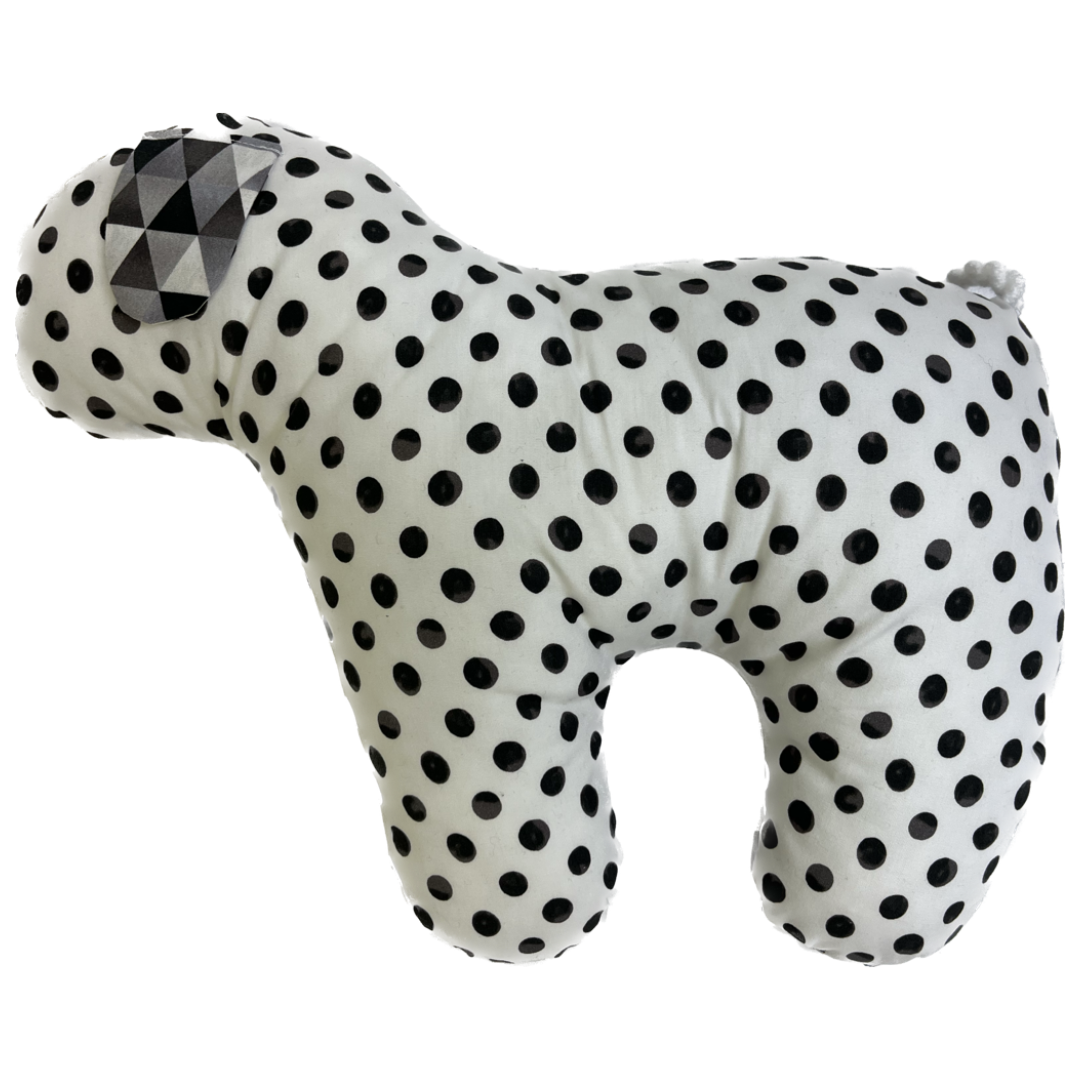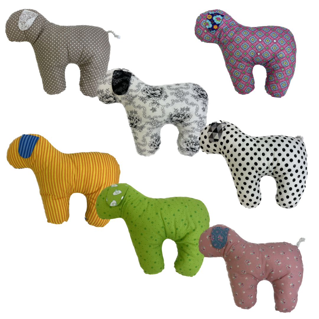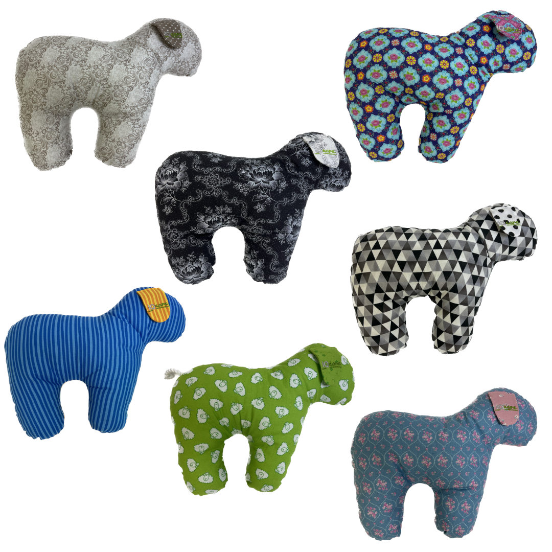 Jedes Schäfchen ist aus zwei aufeinander abgestimmten Stoffen genäht und ein Hingucker, mit hochwertigem IQcare Logo-Stick auf dem rechten Ohr.